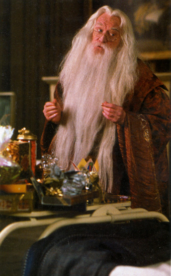 This is a new picture of Dumbledore, played by Richard Harris. His dress and makeup seem pretty on target.