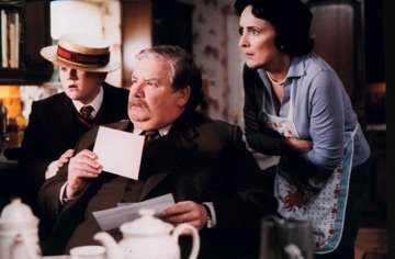 This is a picture of Uncle Vernon, Aunt Petunia, and Dudley. Uncle Vernon turned out looking better than I had originally thought. Dudley's hat looks a bit odd, but it is a publicity still after all.